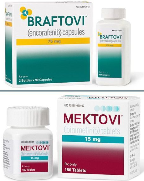 康奈非尼(Encorafenib)是一种激酶抑制剂,与binimetinib联合用于治疗通过FDA批准的检测检测出的患有BRAF V600E或V600K突变的不可切除或转移性黑色素瘤患者。