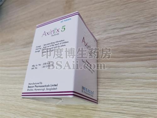 阿昔替尼是一种针对 VEGF 受体 (VEGFR)1、2和3的有效且选择性的口服 TKI,主要表现出抗血管生成活性,印度暂时无法购买到